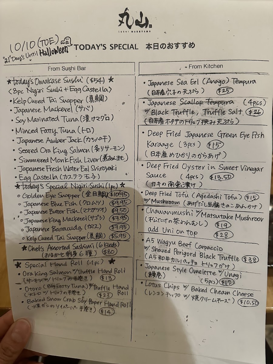 The menu at Sushi Maruyama features a variety of traditional and contemporary Japanese dishes, focused primarily on fresh sushi and sashimi selections. It is structured into several key groups to accommodate different dining preferences, from light starters to more substantial bowls and specialty items.